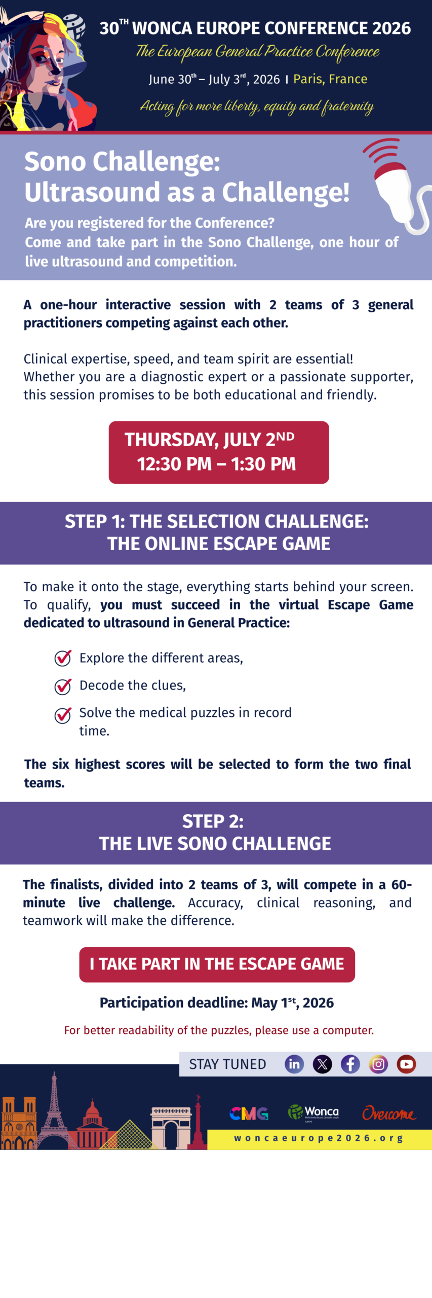 Unique session, rise to the Sono Challenge – WONCA Europe 2026 – February 04th